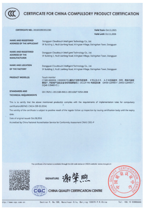 CERTIFICATE FOR CHINA COMPULSORY PRODUCT CERTIFICATION