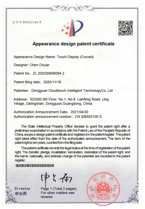 Appearance design patent certificate